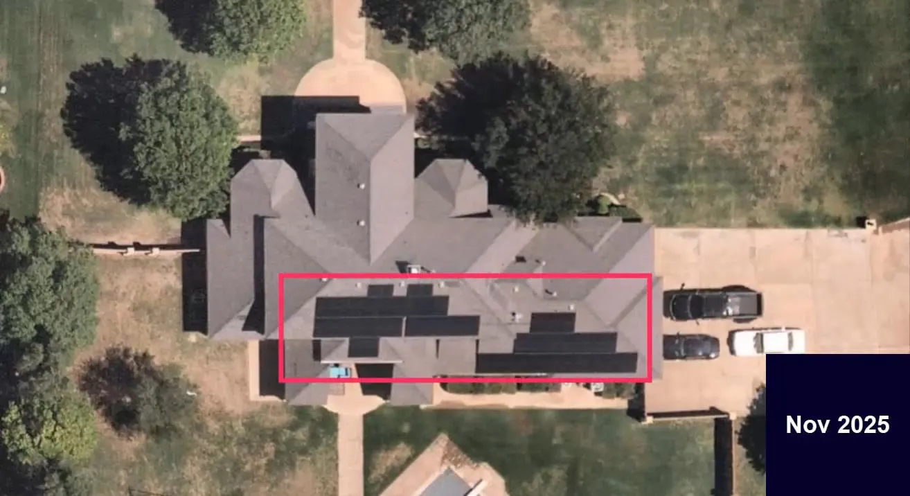 Roof quality, vegetation, debris, and hazards detected from imagery, building permits, and AI.